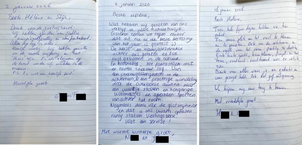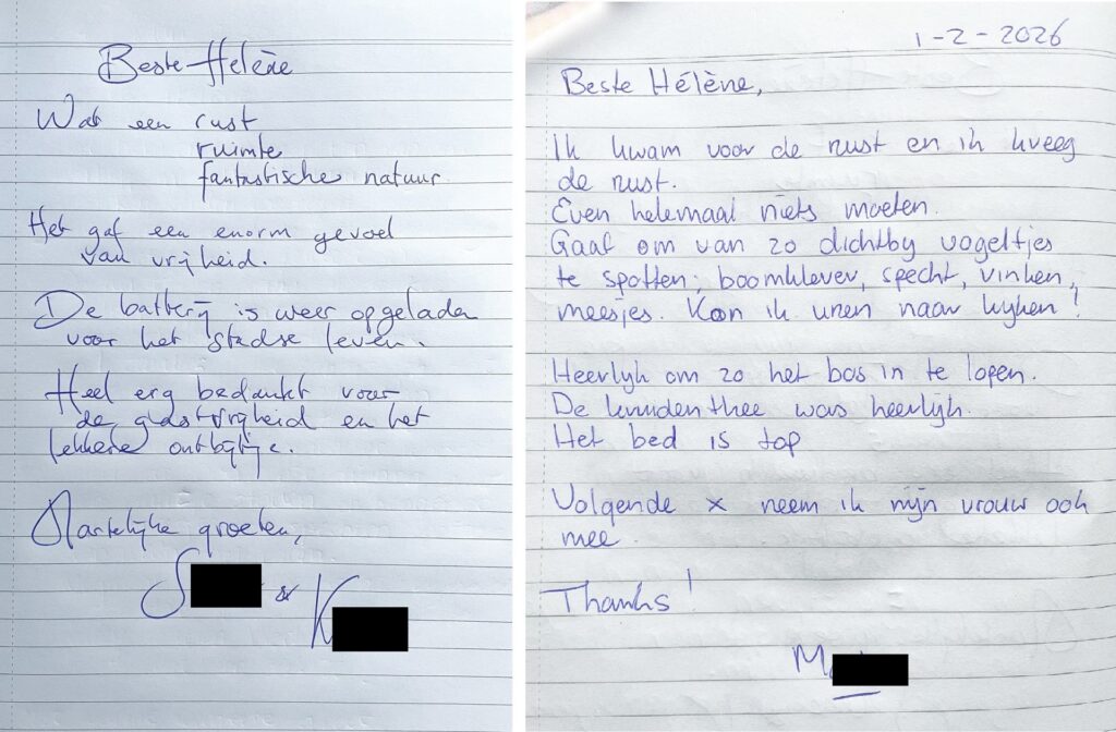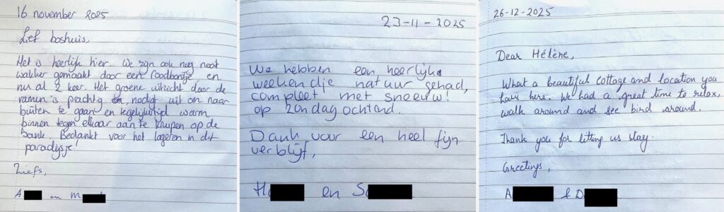 Dit vonden de gasten van onze B&B/natuurhuisje.